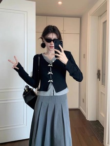 两件套【假两件上衣+百褶半身裙】
