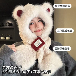 可爱毛绒帽子女冬季新款防寒保暖围脖围巾一体加厚护耳雷锋帽2025