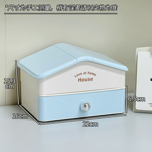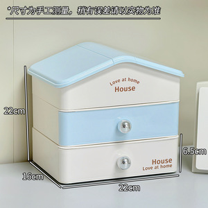 蓝色小房子收纳盒二层一盖