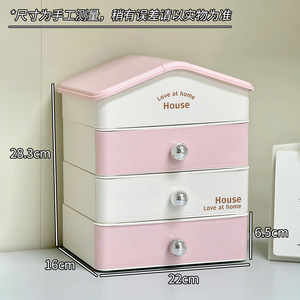 粉色小房子收纳盒三层一盖