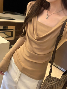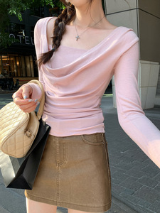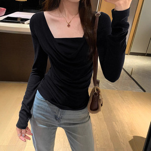 韩系纯欲辣妹风荡领修身长袖T恤女2025秋季新款独特漂亮显瘦上衣