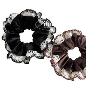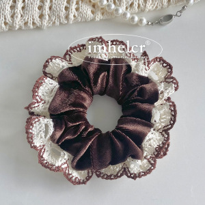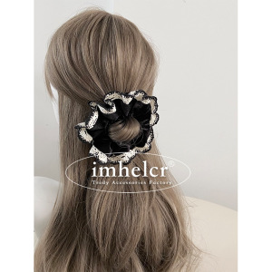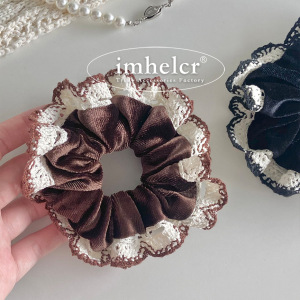 复古氛围感丝绒蕾丝花边大肠发圈法式温柔秋冬丸子头后脑勺发绳女