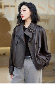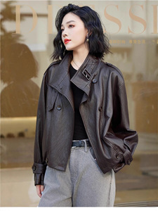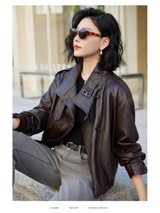哥家商场同款女装2025秋季新款小个子立领气质酷飒风复古PU皮夹克