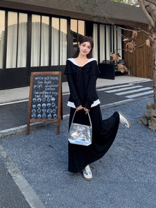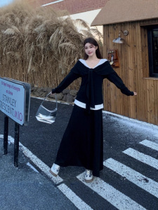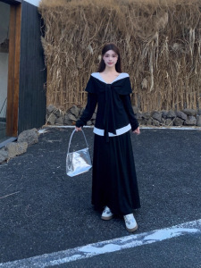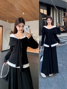 大码胖mm2025秋季新款假两件长袖上衣简约休闲A字半身裙两件套女
