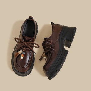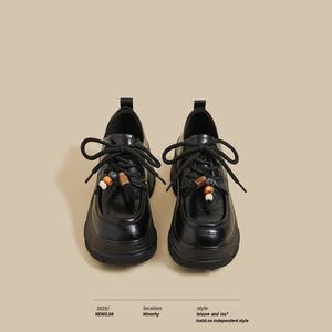 厚底乐福鞋女2025新款秋季复古英伦风小皮鞋舒适百搭系带增高单鞋