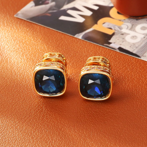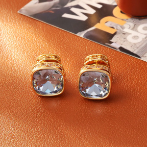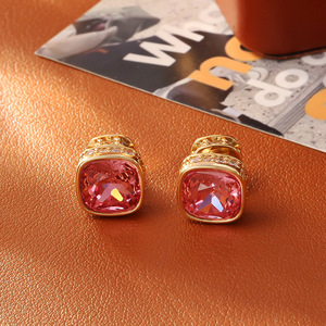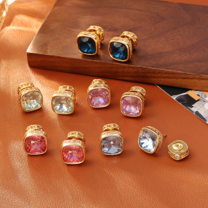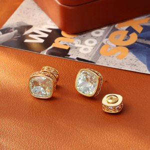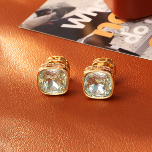 源头厂家方形锆石耳钉法式复古极简风高级感时尚耳饰甜美彩色饰品