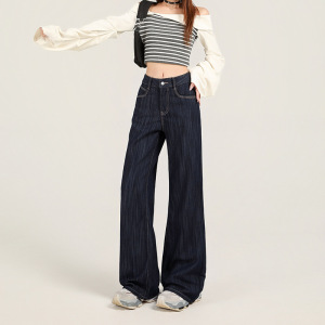 2025秋季新款抗皱条纹微喇牛仔裤女高腰垂顺弹力显瘦百搭喇叭裤潮