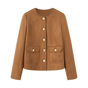 小香风仿麂皮短外套2025秋新款女装圆领气质显瘦上衣90125310406