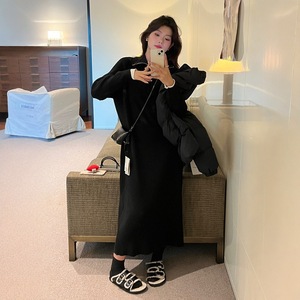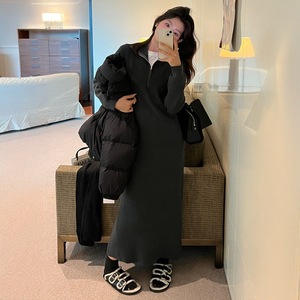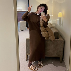 清仓不退换柠檬绿茶法式高质感立领半拉链毛衣连衣裙女内搭长裙冬