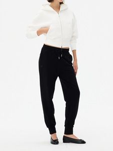 美式秋冬新款百搭显瘦简约连帽收腰拉链长袖开衫女装上衣卫衣外套