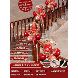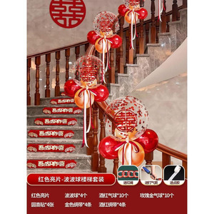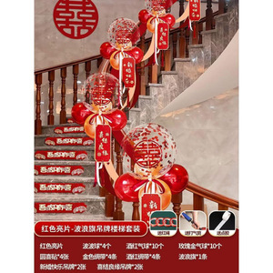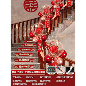 楼梯扶手装饰结婚女方婚礼气球拉花套装男方婚房布置婚庆用品卧室