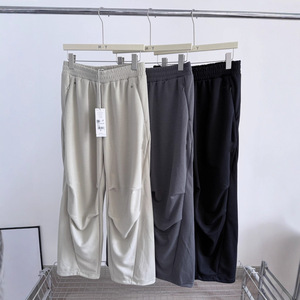 bh6183秋季男女情侣款时髦百搭运动阿哒宽松直筒束口休闲弯刀裤