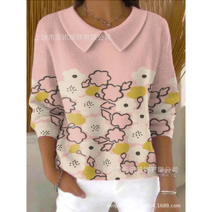 跨境欧美独立新款3D数码印花短袖休闲百搭休闲风女士时尚娃娃长袖