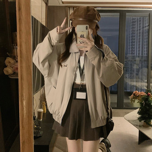 美式复古格纹风翻领情侣秋季双面穿外套女2025新款韩版宽松夹克潮