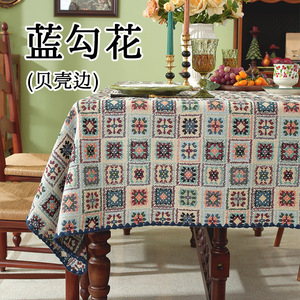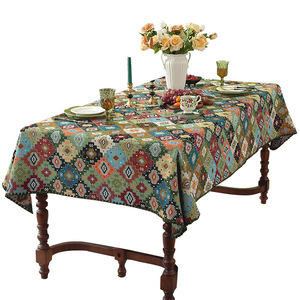 新款复古风仿棉麻餐桌垫防尘美化装饰桌垫长方形植物花卉桌布批发