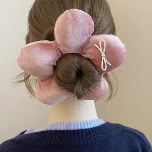 秋冬新款立体丝绒花朵发圈甜美氛围感海绵蝴蝶结大肠圈发饰