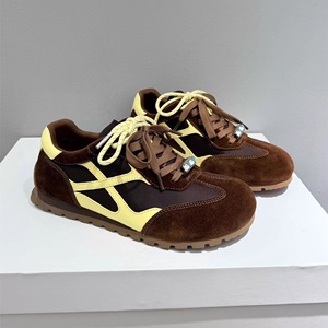 若纪2025新款真皮复古德训鞋女软底平底单鞋休闲运动鞋子阿甘鞋女