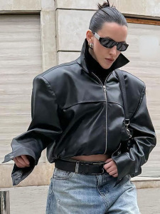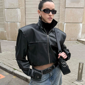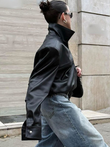 秋冬新款机车风皮革夹克高领皮衣外套设计感气质时尚2025跨境通勤