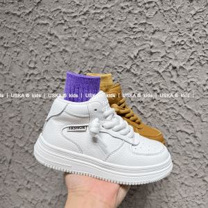 真皮儿童休闲小白鞋2025秋冬款男童高帮运动鞋女童软底防滑跑步潮