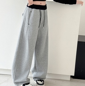 女童四色卫裤2025秋装美式撞色松紧腰拼接弯刀裤休闲阔腿运动裤子