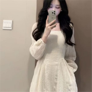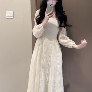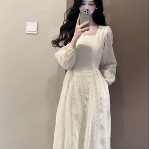 连衣裙收腰蕾丝2025新款法式长袖气质温柔气质长裙