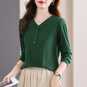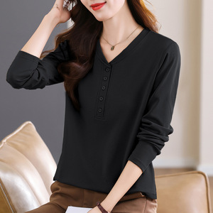 v领长袖t恤女2025新款早秋爆款女装单穿上衣洋气显瘦内搭薄打底衫