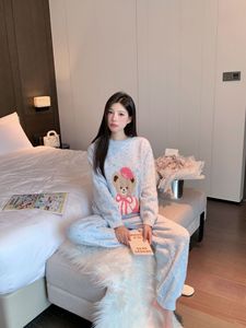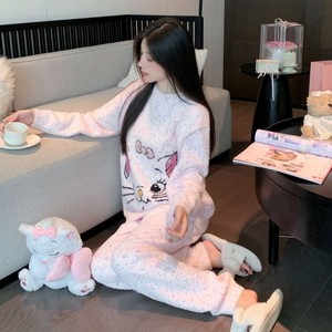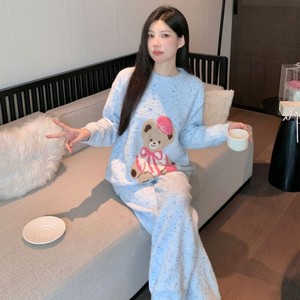 秋冬季睡衣女卡通甜美圆领套头珊瑚绒卡通保暖可外穿家居服套装