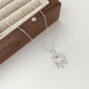 银s925纯银高级感项链女国潮平安如意锁简约银饰百搭潮气质毛衣链