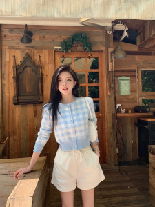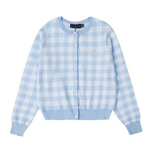 高版本RL拉夫针织开衫小马刺绣撞色格纹时尚气质长袖甜美上衣女