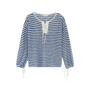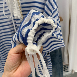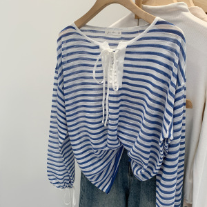 设计感抽绳系带条纹长袖针织衫毛衣女装2025秋季新款宽松显瘦上衣
