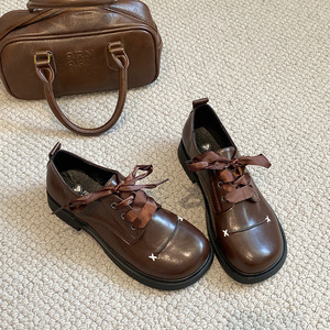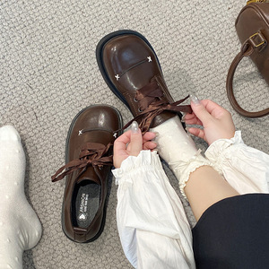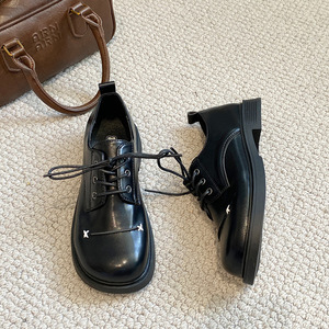 黑色英伦风低粗跟小皮鞋女2025新款秋季百搭配裙子软底复古单鞋子