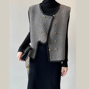 小香风斜条纹马甲外套女短款2025春季韩版新款不规则宽松显瘦背心