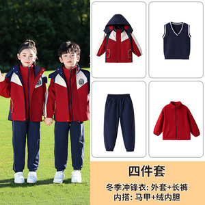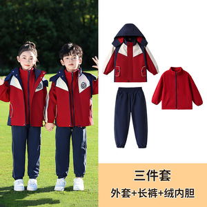 幼儿园园服春秋装冲锋衣三件套一年级学生班服冬季小学生校服套装