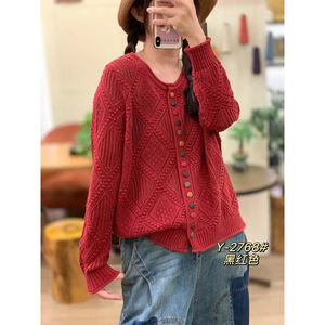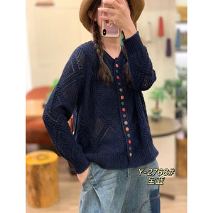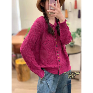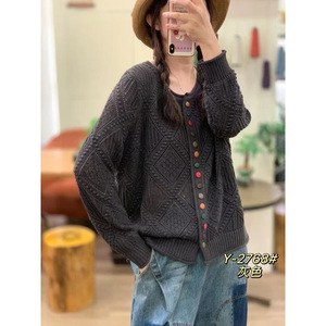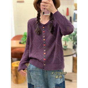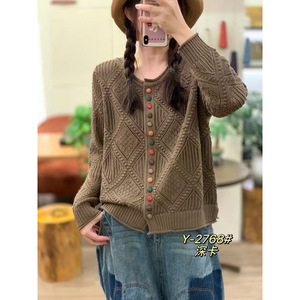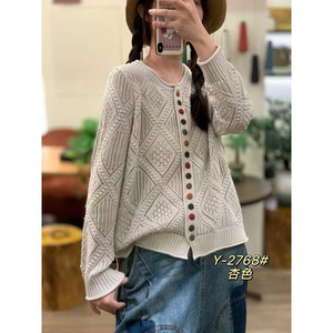 2025新款秋季彩扣圆领复古针织时尚休闲开衫百搭宽松外套上衣毛衣