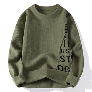 圆领毛衣男秋冬季潮流粗线麻花针织衫潮牌复古保暖内搭毛衣男