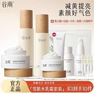谷雨雪肌水乳套装嫩白霜减黄提亮修护保湿熬夜护肤新品旗舰店