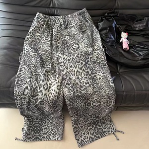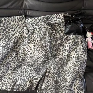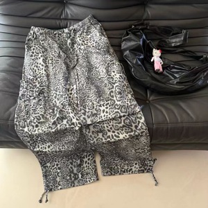2025年早秋新款美式复古豹纹裤子女辣妹宽松慵懒松弛感拖地长裤