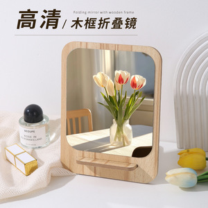 插卡木质台式梳妆镜子家用学生宿舍桌面镜单面拆卸便携化妆镜
