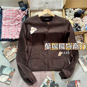 BM风 棕色花边领长袖针织开衫女秋季bm宽松显瘦毛衣外套上衣