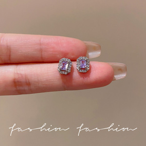精致爆闪彩色锆石耳钉女韩系小众设计精致耳环日常百搭养耳耳饰