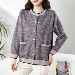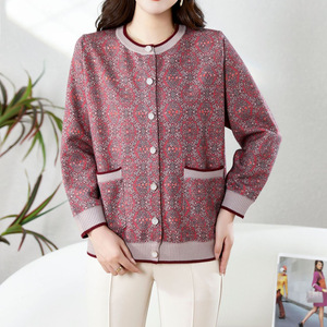 2025秋冬新款民族风妈妈装宽松加厚舒适宽大保暖奶奶装针织开衫
