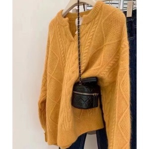 复古粗针麻花灰色套头宽松毛衣外穿慵懒风感女士秋冬加厚上衣