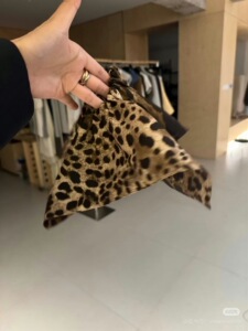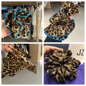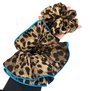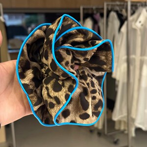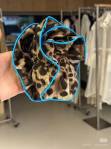 豹纹大发圈蓝色包边小蛮腰大号方巾褶皱方形丸子头花时尚欧美复古
