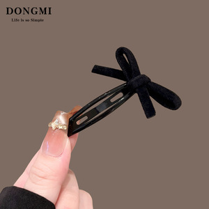 儿童发饰发夹女纯色丝绒蝴蝶结侧边夹bb夹女童甜美碎发刘海夹子