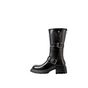 厚底英伦风靴子女2025年秋冬新款皮带扣中筒靴后拉链马丁靴长筒靴