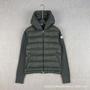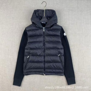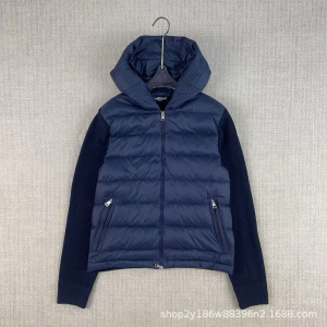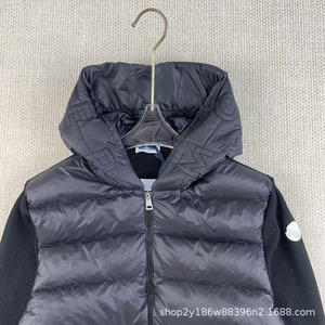 2025秋冬新款青春活力徽章标识字母连帽羊毛针织拼接羽绒夹克