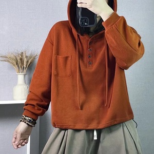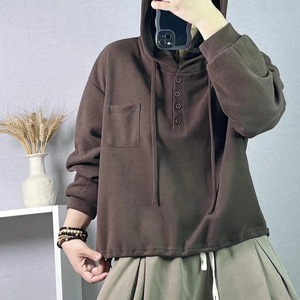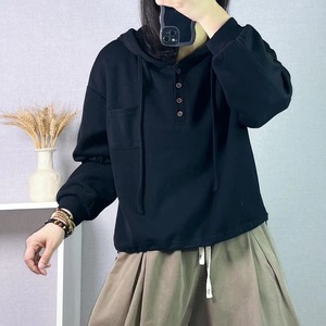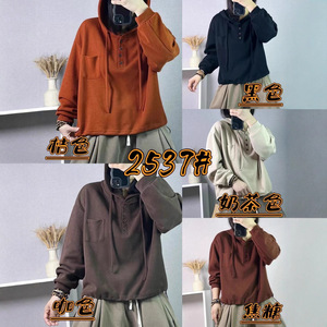 新品文艺时尚纯色抽绳下摆长袖套头连帽卫衣