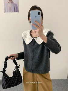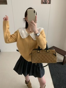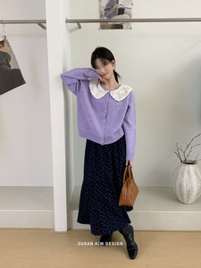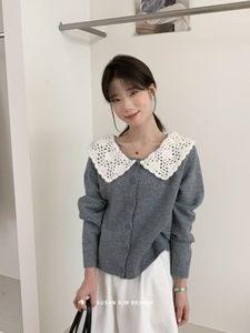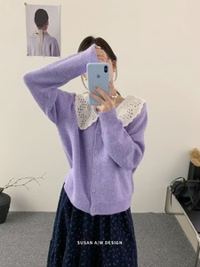苏珊 2025秋冬季新款清新甜美减龄纯色娃娃领开衫针织毛衣女27838