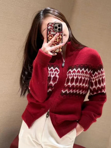 LP女装费尔岛毛衣外套女开衫秋冬季慵懒复古加厚软糯高领针织衫