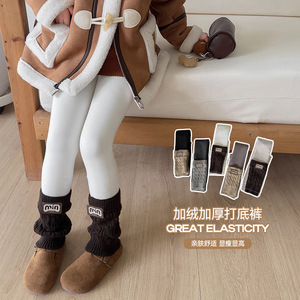 儿童打底裤冬季新款百搭外穿堆堆袜拼接女童加绒加厚一体保暖长裤